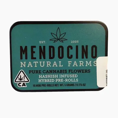 Find your perfect balance with Hybrid Prerolls crafted by Mendocino Naturals. These prerolls bring together the best of both worlds. Enjoy a harmonious blend of uplifting euphoria and subtle relaxation as you savor the diverse flavors and aromas in each puff. Whether day or night, this pack is your ticket to a well-rounded and blissful experience. (Sherbet)