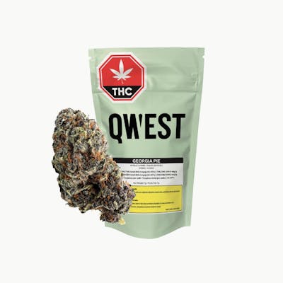 Freshly baked. Georgia Pie is cross of Gellati x Kush Mintz that offers frosty olive green and purple buds. Hits of fresh berries in a nutty doughy crust, all the flavour with no oven required. Say goodbye to overpriced mediocrity. Qwest's high THC flower is crafted in small batches and hang-dried to keep its natural flavours and potency. Consistent craft quality without the sticker shock. More Dank. Less Bank. The truth is in the bag.