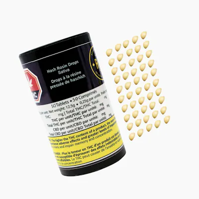 Hash Rosin Drops Sativa are solventless, strain-specific and highly potent in a 10mg x 50 piece format. Made with a list of clean ingredients (coco butter + rosin), and without animal products, gluten, sugar, or sugar substitutes.