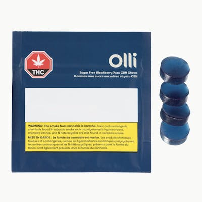 Olli's Blackberry Yuzu CBN Chews are made without sugar and blend the luscious flavour of fresh blackberries with the tartness of yuzu. Each chew contains 2.5mg of THC along with 5mg of CBN.