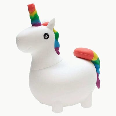 The Unikorn, like all PieceMaker products, is made of high quality silicone and features a bent, diffused downstem hidden under the tail cap. This "Kap" allows you to pack a bowl and take it with you on the go. The head of the Unikorn pops off so you can easily fill and clean your water pipe. The horn mouthpiece provides smooth, water-filtered draws while providing a unique talking piece. PMG Unikorn Features: Size: 5.8" x 5.5" x 3" Unique Unicorn Design Hex-Tek Diffused, Bent Downstem with Tail "Kap" Removable Head for Filling and Easy Cleaning Ergonomic Carb Hold Replaceable Metal Bowl with Built in Screen Horn Mouthpiece FDA Approved Silicone