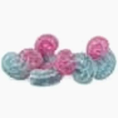 Five indica blue raspberry and watermelon gummies with sour crystals and natural flavours. Five big “S” gummies per pack, with 2mg of THC each.