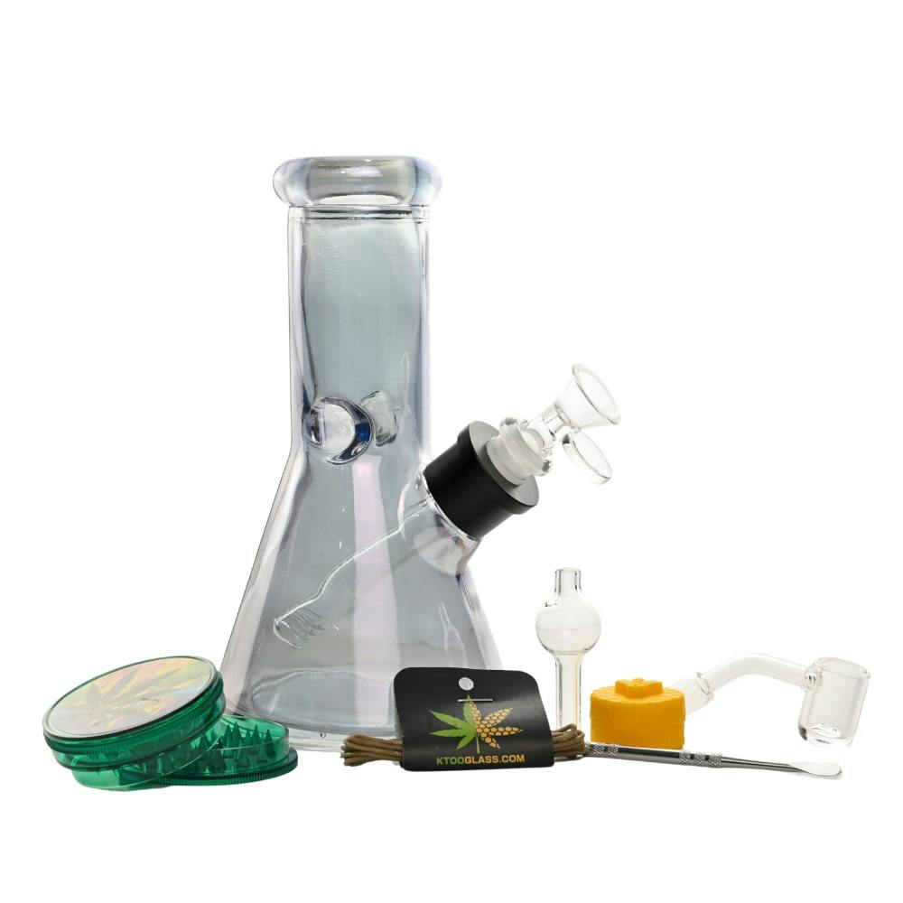 8" Colored Rim 6-in-1 Glass Bong Kit - N
