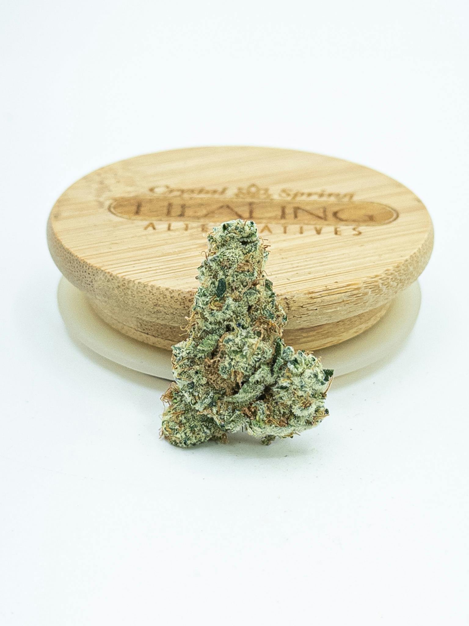 With citrus notes and earthy undertones, this strain smells as sweet as the fashionable and fruity brunch drink it’s named after. A medium-sized plant that is well-suited for either indoor or outdoor grows, the flowering period can take around nine weeks. Cultivators should expect spade-shaped, light-green colas that are coated with sugary resin and spotted with orange stigmas.