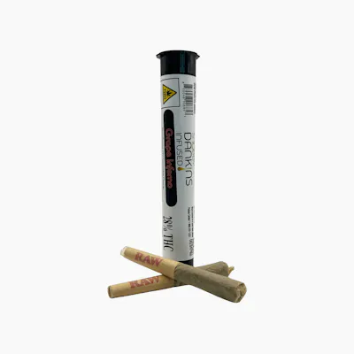 (2) Kief infused, half-gram prerolls. No trim. No shake. Just fully ground Grape Inferno, flower AND kief. Each mini-J smacking at 27% THC.