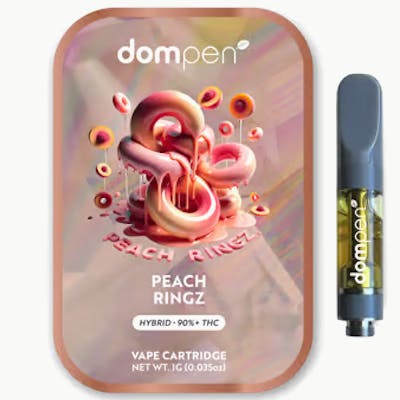 dom cartridges contain a total of 1g of high-grade cannabis oil. dompen has established itself as a leader in the vaporizer category over the past decade, with growing sales across North America. With optimized airflow, clog-prevention technology, and a next-generation wick, our cartridge has been designed for performance. dom is an easy way to consume cannabis on the go, without hassle. Peach Ringz is a balanced hybrid strain that packs sweetness and aroma. Whether it’s noon or evening, this balanced formulation provides versatility for anytime use. This strain is from our most popular and most potent line, dompen Classic, and tests at 90%+ THC. Infused with flavorful fruity terpenes to guarantee a discreet and consistent experience wherever, whenever.