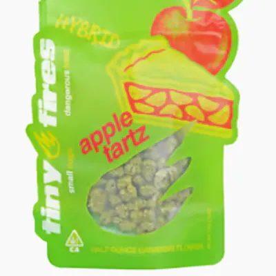 Tiny Fires Apple Tartz is a lively hybrid flower created by crossing the legendary Apple Fritter and Runtz strains. It is highly regarded for its balance of sweet, pastry-like flavors and high-potency effects that typically test between 26% and 32% THC.