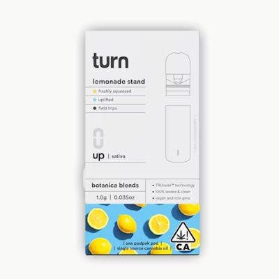 **POD ONLY, REQUIRES TURN BATTERY** SATIVA Flavor: Freshly Squeezed Feeling: Uplifted Fresh squeezed! If a lemon drop and the Sun had a baby, this would be it. Perfect for goal-crushing or an extra nudge out of bed, this sativa-forward strain could be just what you need to get into a blissful state of focused euphoria with a chill effect as it tapers off.