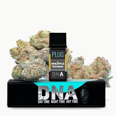Set sail for a tropical paradise! With PLUGplay’s PLUG DNA: Pineapple Express euphoria and vaping are synonymous. PLUG DNA: Pineapple Express has a sweet and fruity flavor profile with effects that wash over users with calming relaxation and positivity. According to actor and comedian Seth Rogen, the Pineapple Express cultivar didn’t exist until after the 2008 movie of the same name brought the name into the spotlight. Inspired by the film, growers took it upon themselves to create a potent cultivar that the film described as “the dopest dope.”\n