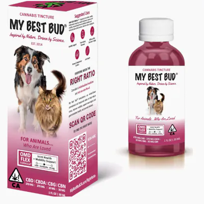 THC-Free! OMD Flex combines targeted cannabinoids with plant-derived terpenes to support mobility, flexibility, and joint comfort. Ideal for pets who benefit from daily movement support as part of an active or aging lifestyle. Contains 6270mg of CBD + 270mg of CBDA + 30mg of CBG + 30mg of CBN per bottle.