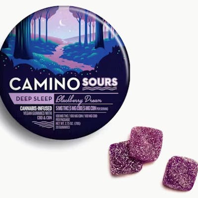 Drift into dreamland by way of a whimsical woodland forest filled with fragrant blackberry bushes. Blackberry Dream Camino Sours combine an indica-like blend of THC and CBN with chamomile and lavender extracts for a tranquil effect enhanced by soothing terpenes. Take one of these subtly sour gummies and call it a night.
