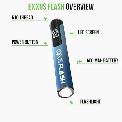 Shine a light on your sessions with the Exxus Vape Flash 510 Variable Voltage Battery and enjoy a cartridge vaporizer with a fully functional built in flashlight! With just the push of a button the Exxus Flash can switch between ripping blinkers to showing the way forward, finding that missing cartridge, and every other night time adventure in between.