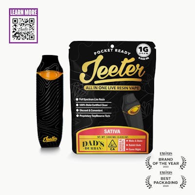 Jeeter All In One Live Resin Vape | 1G | Pocket Ready Bold flavor. Big clouds. Full-spectrum experience. Our 1g AIO Live Resin vape brings out the full complexity of fresh-frozen extract. Each component is tuned to the viscosity and terpene profile of live resin, delivering strong effects and rich, strain-specific flavor in every pull.
