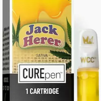 The Jack Herer CUREpen Cartridge is based on the classic Jack Herer strain. A full-gram Sativa-dominant vape, the oil in this 510-cartridge delivers the signature 'Herer' essence with hints of wood and spice. A great mid-day motivator, this cartridge cultivates a sense of energetic bliss mixed with a dash of creative joy.