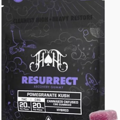 Heavy Hitters honors the indomitable spirit of cannabis by creating a potent, rare cannabinoid remedy designed to support a calm and relaxed state of mind, promote energy levels, and maintain overall comfort. Introducing the Heavy Hitters Resurrect CBG Recovery Gummy. This maxed-out gummy features a 1:1 ratio of THC and CBG, crafted for those seeking a renewed sense of well-being and inner strength. Powered by bold pomberry flavors and Pomegranate Kush, these hybrid gummies deliver a surge of comfort and perfect relaxation. Each 20mg gummy is a testament to resilience, designed to help you bounce back and find balance. Step out of the ring, recoup, and resurrect with Heavy Hitters CBG Gummies. Terpene Blend: Terpinolene, Myrcene, Limonene