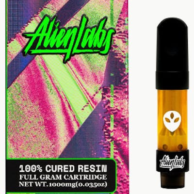 This is a potent hybrid strain from AlienLabs. Its flavor profile is a delightful journey: spicy and buttery sweetness on the inhale transitions to a peppery, earthy and slightly tangy exhale. Perfect for unwinding after a long day, this strain delivers sedating and calming effects paired with a cerebral buzz to ease the mind and body. Alien Labs Cured Resin oil now available in a 1 gram 510 battery compatible cartridge. The cured resin inside is extracted from freshly cured indoor cannabis plant material, delivering on a flavorful and natural plant experience. We use the very same material that is cured and harvested off the plant to make the oil in this Cured Resin Cartridge. It's true to the strain, true to nature, with nothing else added.