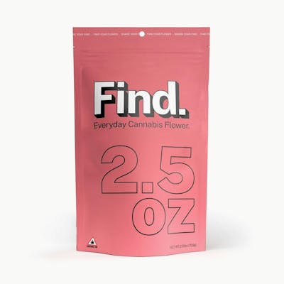 You’ll have to experience the unique scents and flavors of this fruit-forward, sweet sativa for yourself! Top terpenes include Caryophyllene, Limonene, and Myrcene. -Whole flower nuggets in sizes and strains for any occasion. Find exactly what you're looking for in our Strain-Specific assortment of quality flower, whether that's an Indica, Sativa, or Hybrid experience.-Say hi to Find - the everyday cannabis flower you've been looking for. Available in whole flower, popcorn buds, pre-ground shake, and pre-rolls, it’s perfect for good times with good friends or a solo session. However you want to enjoy it, Find will give you the quality and quantity you’re looking for—at a price that’ll make you smile.