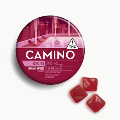 When you're gearing up for an epic night out with friends or a night in with that special someone, it's time for Wild Cherry Excite Camino gummies – your ultimate go-to for igniting joy and passion without alcohol. Each tantalizing gummy is packed with the perfect blend of 5MG of THC with sativa-like terpenes and an invigorating sweet cherry flavor designed to get your energy flowing and your spirits soaring.