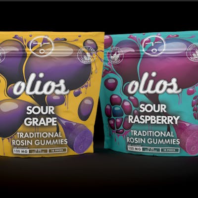 A live rosin gummy from Olio. Made with high quality ingredients including fruit and vegetable flavoring and coloring and our solventless rosin. These are an all natural, gluten-free, vegan alternative to other products, focusing on the familiarity of traditional onset edibles.