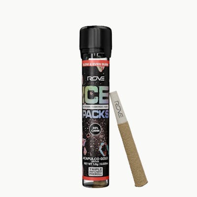 Rove Ice Packs, the world’s first triple-infused preroll. Made with premium-grade flower fully-infused with THCA diamonds and solventless ice hash rosin, they're expertly rolled, then coated with more ice hash. Super smooth and ultra potent. Welcome to the next evolution of prerolls.
