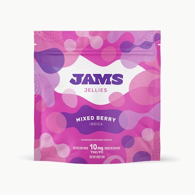 JAMS Jellies, Mixed Berry. - Ten 10mg THC Jellies, 100mg THC Total. - Meet JAMS, a full sweet of cannabis infused treats with all the delicious flavors, doses, and form factors to choose from so you can hit your sweet spot. From microdosable Tarts, to decadent Chocos, to delicious Jellies that will leave your taste buds tingling! Whether you're looking to surf crowds at a concert or surf channels during a cozy night in, JAMS has something to make any moment sweeter! - Grab some of these and make others jelly. Expertly formulated cannabis infused gummies available in three delicious all-natural flavors with consistent edible effects that hit sweet like an oldie but a good goodie.