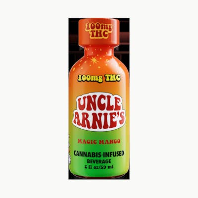 On the go? Grab an Uncle Arnie's 10mg THC Magic Mango Shot! Get ready for a little twist with our Magic Mango shot. Remember those mango gummy rings? Uncle Arnie took the flavor, and created a cool, fruity blast with a surprise peachy finish that makes every sip a bit of an adventure. But unlike gummies, Arnies nano-molecular tech will have you feeling magic in 20-40 minutes.