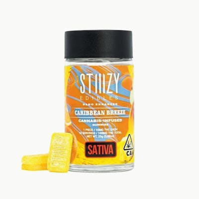 STIIIZY Caribbean Breeze Gummies are sativa dominant live resin infused treats. For faster effect, these gummies are formulated with fast-acting nanotechnology in 10 mg pieces that can start going into your bloodstream much faster than regular cannabis oils.
