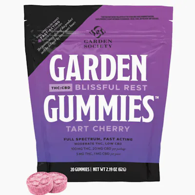 Garden Society Tart Cherry THC-CBD gummies will have you in rest and relaxation mode in no time. Enjoy the juicy flavors of ripe cherries in these fast-acting full spectrum gummies