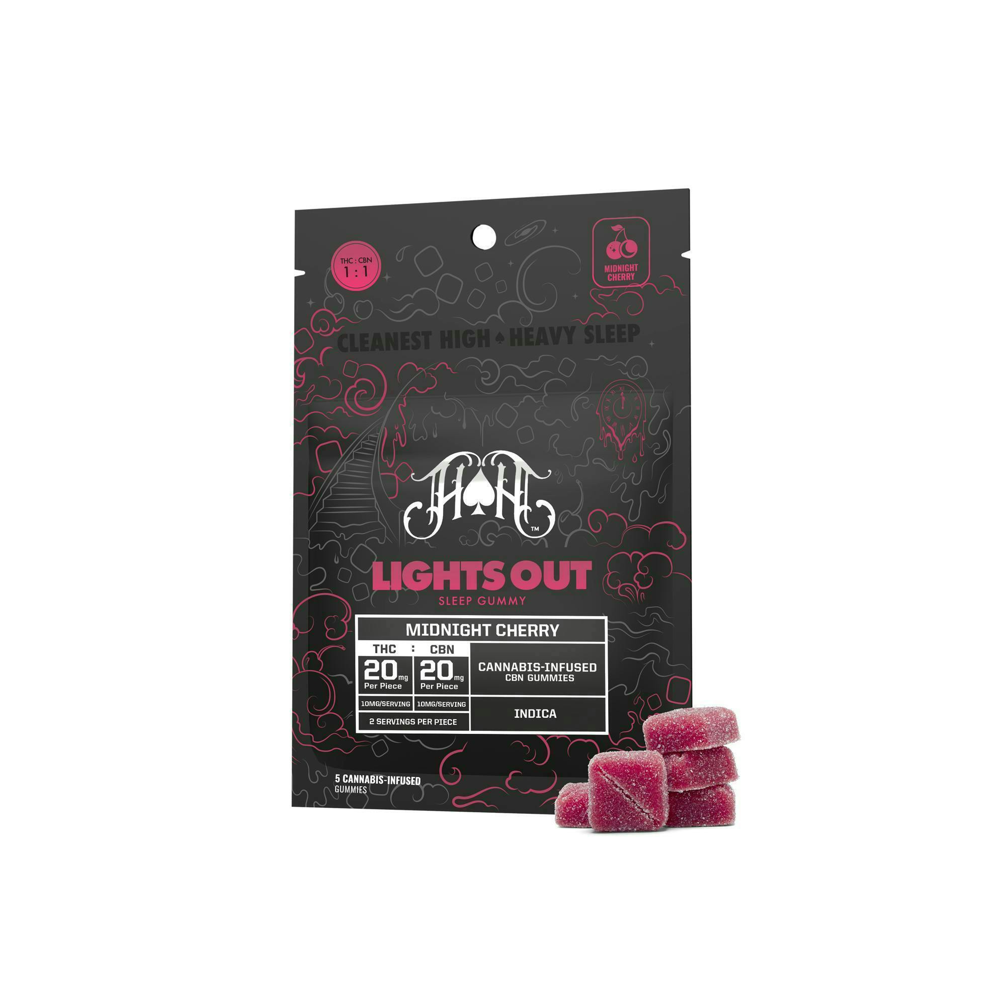 Midnight Cherry | Indica - Lights Out Sleep Gummies - 100mg THC | 100mg CBN