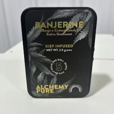 Alchemy Pure fine rolled pre rolls come from cannabis in its purest form, nature-grown in New York’s Hudson Valley. Our mission is to leverage our organic farming experience and deep connection to the land to bring beautiful, pure, nature-grown cannabis, pre rolls, and more to the New York market. Now at a more accessible price, with a freshness bag inside the tin! Sativa: 75/25 Sativa, one of our highest yet in terms of Sativa dominant strains (most of what you see these days is 60/40 max in either direction, so this is a very decidedly Sativa! Banjerine is a follow up to our Nectarine Jelly strain, and will have a similar fruity and vibrant aroma and flavor profile. 5 x .5g Kief Infused pre-rolls.