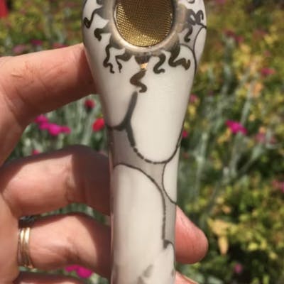 Ancient Creations White w/ Silver Spoon Hand Pipe