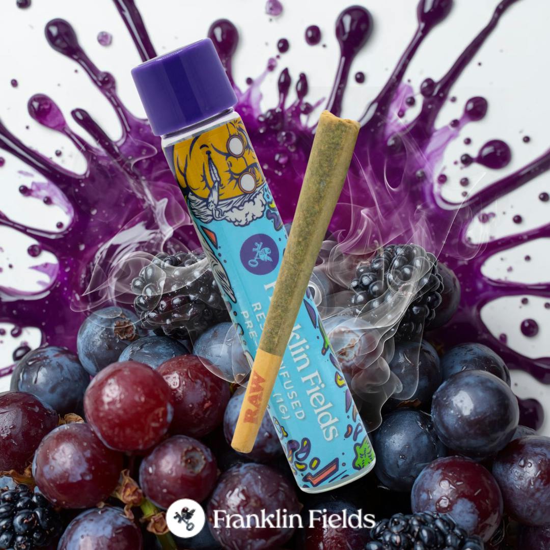 Purple Urkle Infused Pre-Roll is a deeply soothing indica experience that combines rich flavor, potency, and relaxation in every puff. Crafted with premium indoor-grown flower, THCa resin, and strain-specific terpenes, this infused pre-roll delivers a luxurious and powerful smoke at an accessible price point. Expect an initial sense of calm euphoria that eases the mind, followed by a heavy body relaxation perfect for unwinding after a long day. With its grape-forward, sweet berry aroma and undertones of earth and spice, Purple Urkle offers a flavorful, dessert-like profile that’s as comforting as it is potent. Ideal for evening sessions, stress relief, or quiet nights in, this indica delivers the signature Franklin Fields smoothness and consistency you can count on — a perfectly balanced blend of flavor, aroma, and full-body tranquility.