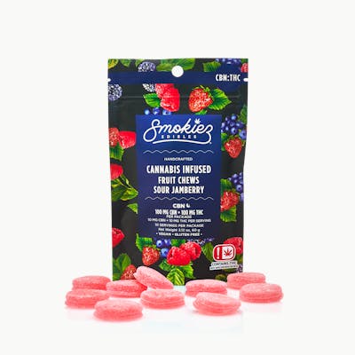 Sour Jamberry 100mg CBN : 100mg THC 1:1 Fruit Chews - CA