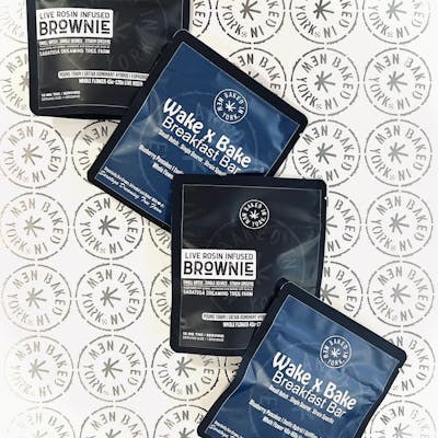 Live Rosin Infused Brownie Indulge in the perfect fusion of decadent flavor and potent relaxation with Baked in New York® Live Rosin Infused Brownie. Handcrafted with premium, whole-flower 45u-120u live rosin for a superior experience. This rich, fudgey brownie delivers a smooth, flavorful bite that’s as delicious as it is effective. Wake x Bake Breakfast Bar Start your day the Baked in New York® way with a delicious small batch, single source, strain specific breakfast bar. This treat is made with Blueberry Pancakes, an exotic hybrid whole flower strain containing 45u-160u live rosin resulting in an uplifting and joyful edible experience. The Wake x Bake bar also contains 6.5mg of protein.