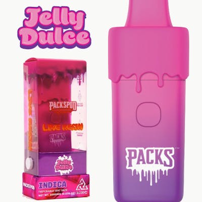 Jelly Dulce | 2G Packspod Live Resin Disposable We're still gathering information about the Jelly Dulce strain. If you've had edibles, flower, joints, or other cannabis products of this strain, please let us know by leaving a review.