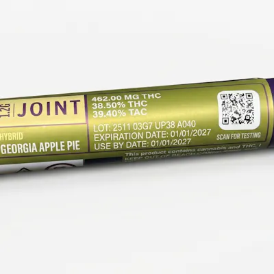 Premium 1.2g infused pre-roll joint made with high-quality cannabis flower and concentrate for enhanced potency. Features a sweet Georgia apple pie flavor profile with notes of baked apple, cinnamon, and dessert-like sweetness. Designed for a smooth, flavorful smoke and stronger effects compared to regular pre-rolls.