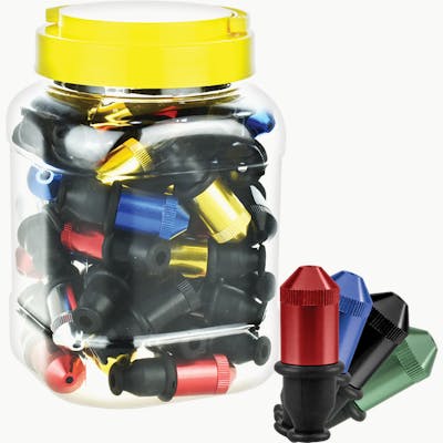 These Bullet Pipes measure 2.25 inches (5.7cm) long and feature a discreet, segmented design. These metal pipes come apart into separate pieces for easy cleaning. The pipe has a heat resistant silicone mouthpiece and bowl cap that protects herb and functions as a wind guard.