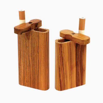 These wooden smoke stoppers are available in Large (3.75") include metal taster bats in a spring loaded chamber. These dugouts feature an external stripe design and polished wood finish. Sold individually.
