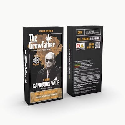 Growfather | Peaches & Cream Runtz | Cryo Liquid Diamond | Disposable | 1g A smooth blend of Runtz live rosin terpenes and nostalgic peaches & cream flavor. Expect sweet fruit, creamy vanilla, and a subtle gas finish with full-body relaxation and mellow euphoria. Tasting Notes: Peach, cream, sweet gas Effects: Relaxing, euphoric, mood-lifting Infused With: Cryo live rosin + botanical enhancements Device Features: Full Ceramic Coil – No metal, no cotton. Just clean, consistent vapor with 360° heating. Liquid Diamond Infusion – Ultra-refined cannabinoids for a smooth, potent hit. Cryo Live Rosin Terpenes – Strain-specific flavor and full-spectrum effects, preserved through cold extraction. LCD Display – Puff counter, battery life, and 3 heat settings for full session control. Rechargeable & Portable – Designed for on-the-go use without compromising on power or purity.