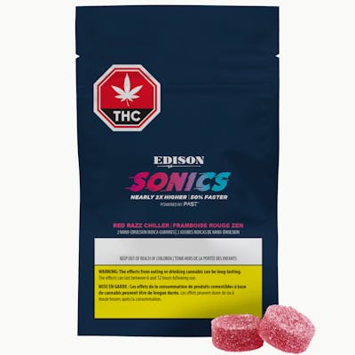 2x Higher-2xFast. Explode your taste buds with Red Razz 1:1 CBD/THC edibles by Edison-Sonics.
