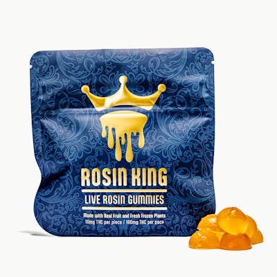 Crafted from fresh frozen, single-source cannabis and infused with real fruit flavor, Rosin King Live Rosin Gummies deliver a clean, solventless experience in every bite. Each gummy contains 10mg of THC for a smooth, full-spectrum experience that’s pure, potent, and fit for a king.