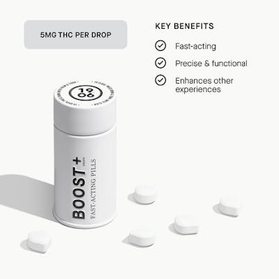 Boost is a fast, simple, and clean way to experience 5 mg THC – on its own or as a boost (get it?) to any other experience. Boost is a fast-acting, swallowable pill that hits in about 20 minutes or less. No sugar, no calories, no dairy or animal products, and no allergens, including gluten – simply the healthiest way to consume cannabis. Highlights Rapid Activation (20 minute onset) Easy, Familiar Format (Pills made to swallow) Discreet and ultra portable Vegan + Gluten, Allergen and Dairy Free!