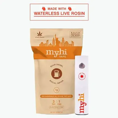 MyHi Social Sativa all-in-one disposable 1g vape – made with solventless rosin
