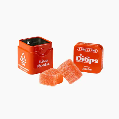 Strain: THC Bomb (sativa)Effect: Creative. Mentally Stimulating.Dosage: 100mg THCPieces: 2Drops are made with Strain-Specific Live Rosin! This high-quality concentrate preserves a full-spectrum of all the psychoactive compounds and cannabinoids found in a particular strain. We use all natural fruit extracts as well as pectin instead of gelatin. This means our edibles are vegan and gluten-free!