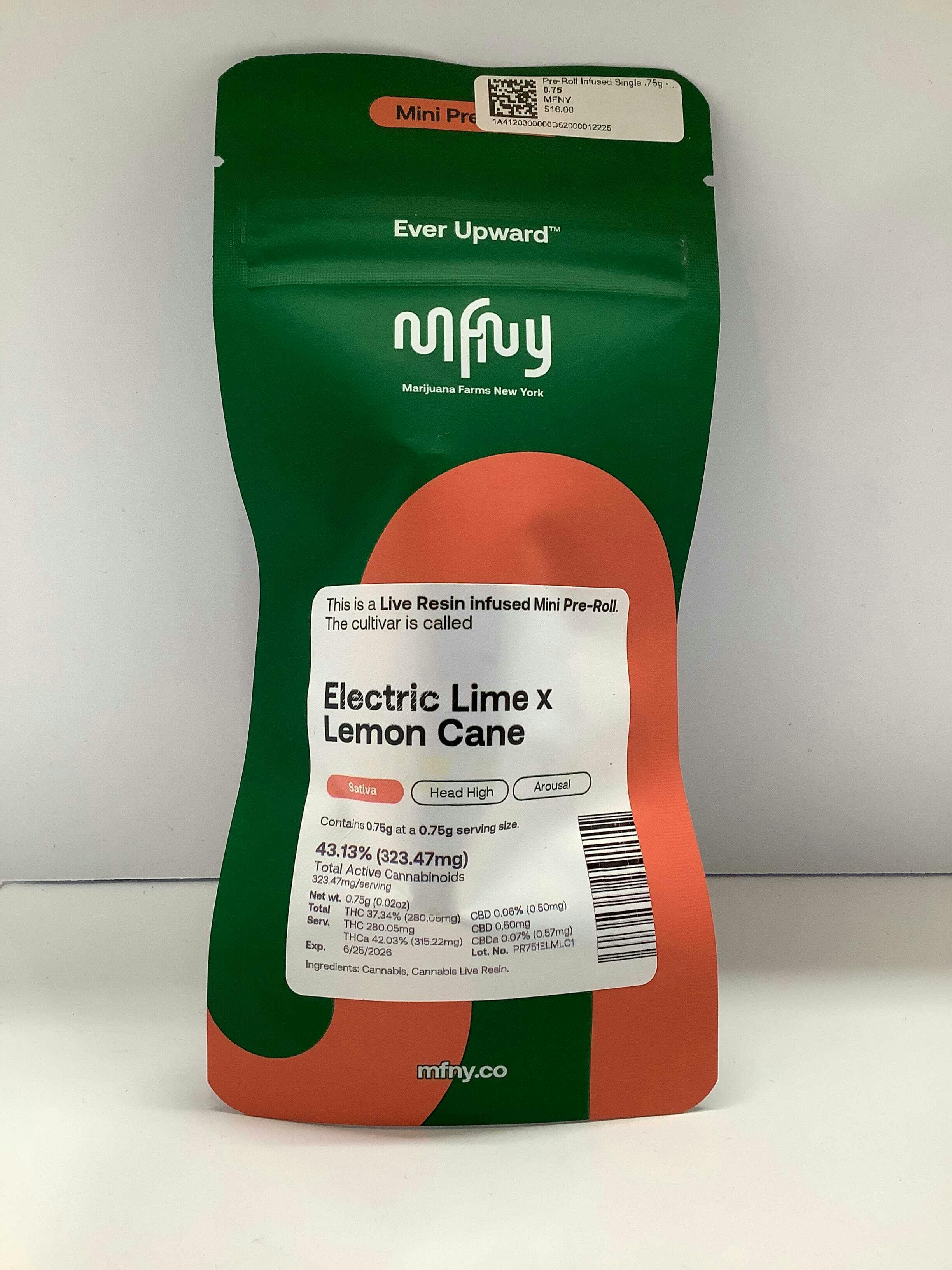 MFNY - Pre-Roll Infused .75g Single - Electric Lime x Lemon Cane Live Resin