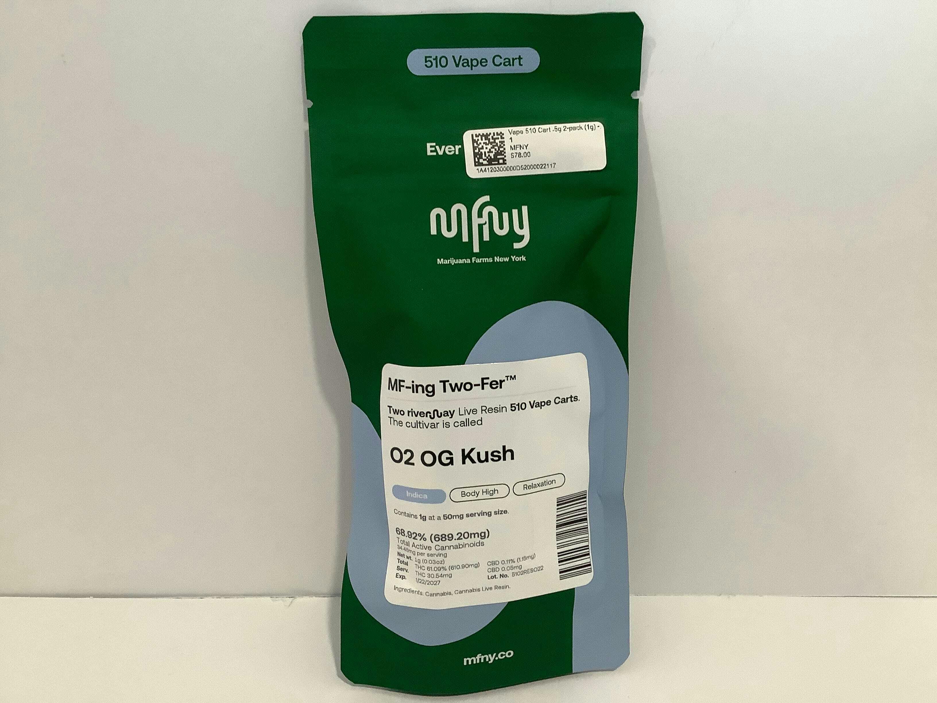 MFNY - Vape 510 Cart .5g 2-pack (1g) - O2 OG Kush Live Resin