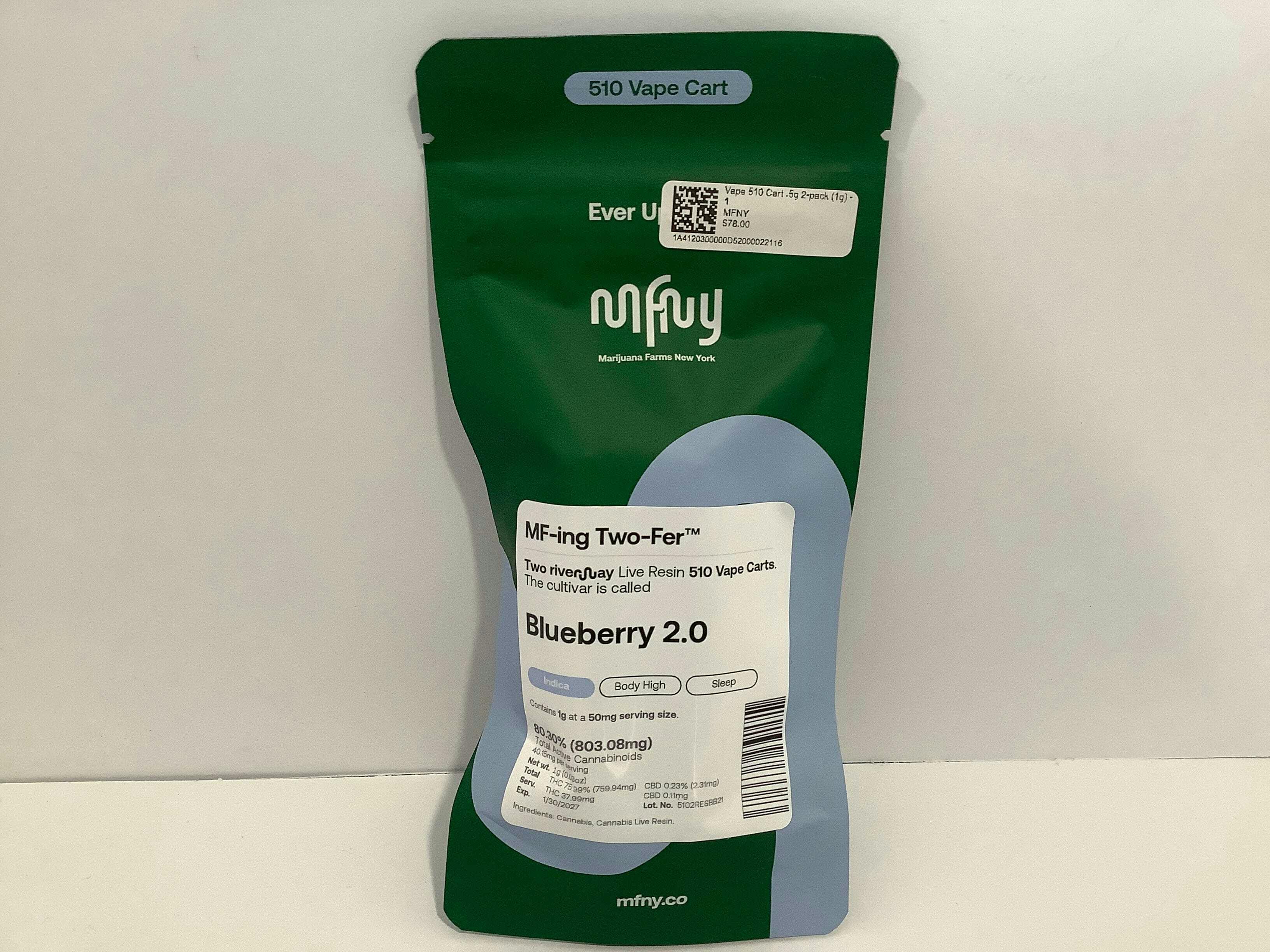 MFNY - Vape 510 Cart .5g 2-pack (1g) - Blueberry 2.0 Live Resin