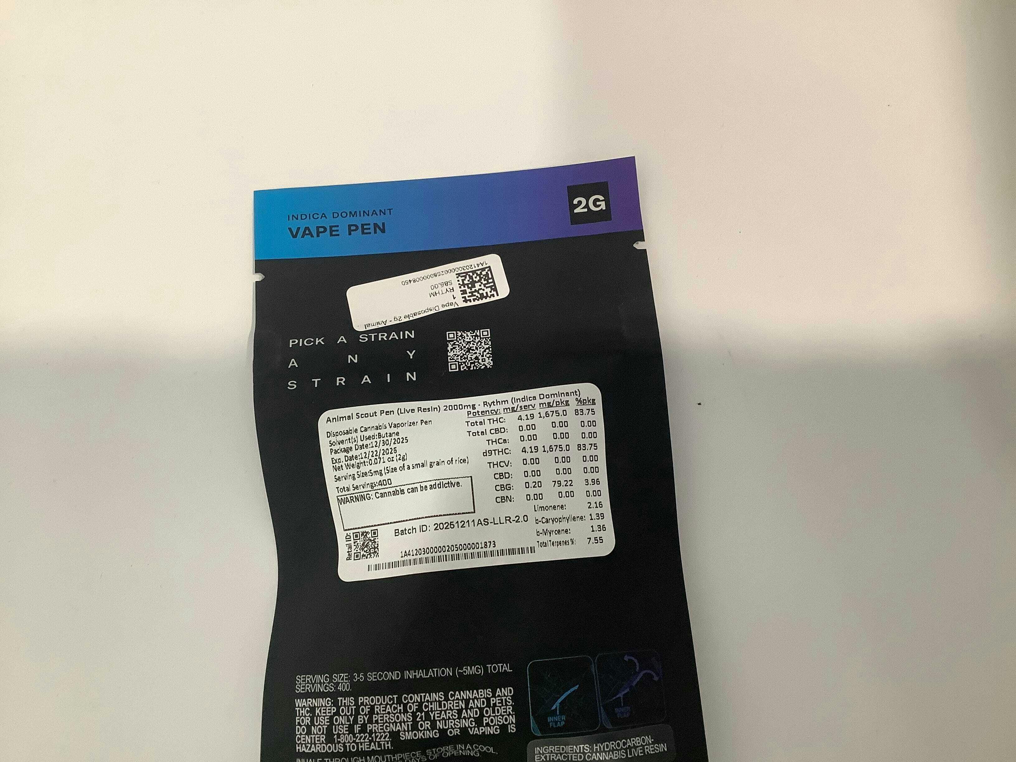 RYTHM - Vape Disposable 2g - Animal Scout Live Resin
