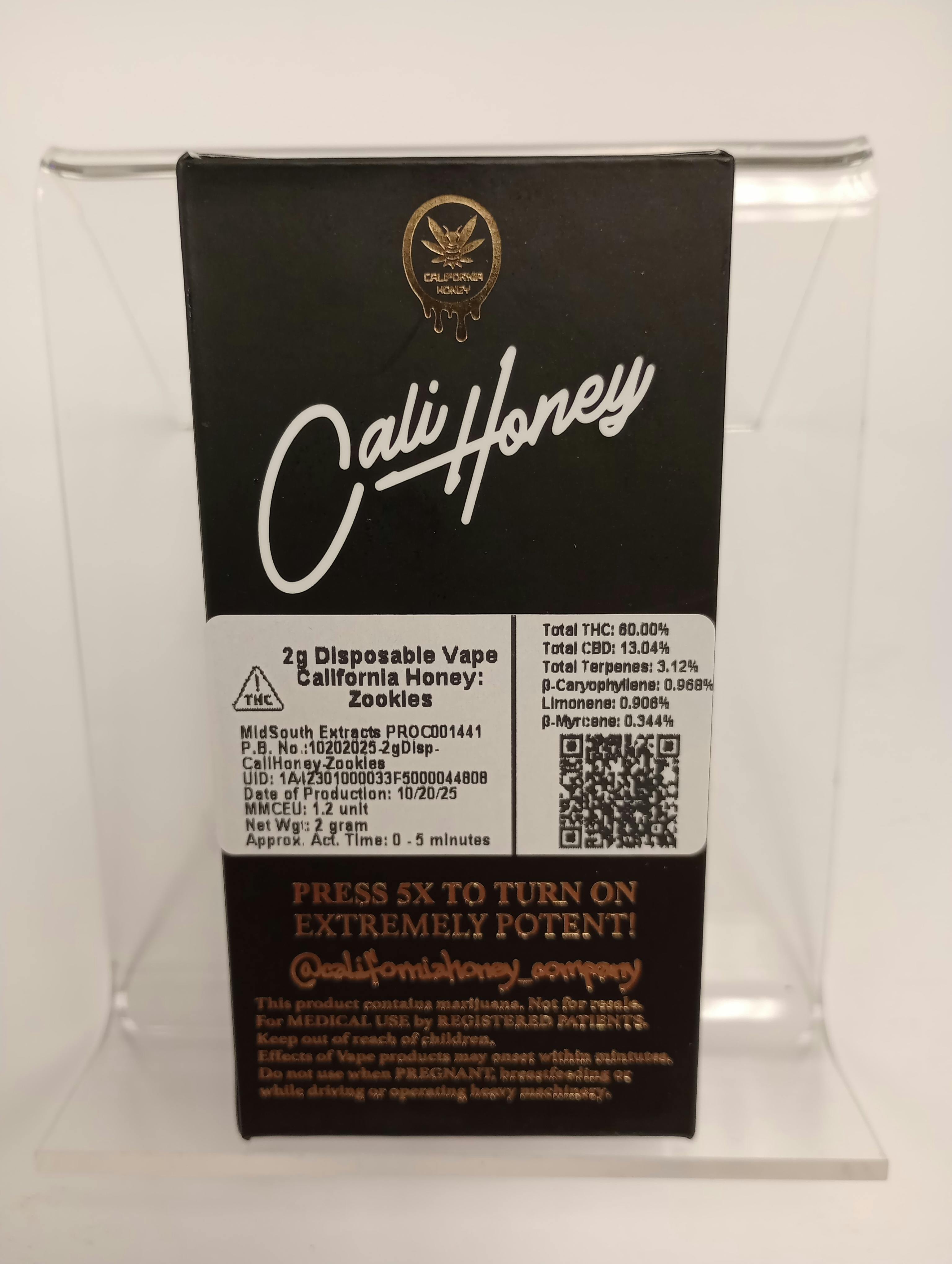 Cali Honey - 2g Disposable - Zookies - 60% -