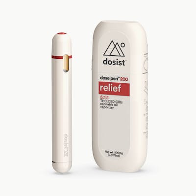 Dosist - .5g Relief relief combines cannabis derived THC, CBD, and CBG in a 5:1:1 core need state formulation with soothing terpenes to create a feeling of less pain with earthy spicy notes. Relief 5:1:1 THC:CBD:CBG good for • aches and pains • inflammation • discomfort